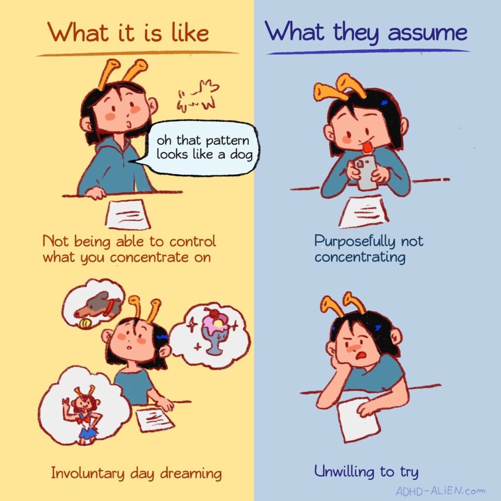 Hyperfocus is commonly a reason for ADHD not to be recognized by teachers or parents early on, or passed up as a possibility, because ” they CAN focus if they WANT to”. But this is just the flip side of the distractibility: both are at the core a difficulty with regulating attention. People in hyperfocus tend to exhaust themselves without noticing they need a break, often with outbursts of emotion, or severe exhaustion as a result.