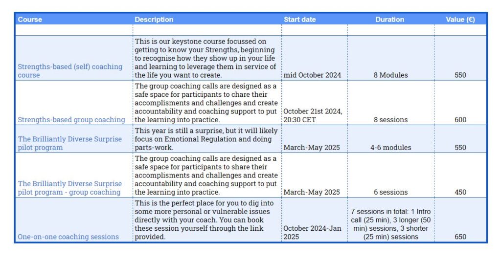 - FREE access to selected courses and group coaching (in collaboration with the Neurodiversity Education Academy).